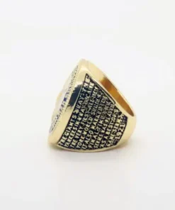 Our championship rings are meticulously created by our artisans. We use a copper base, which takes longer and requires more effort, but produces crisper details and a brighter final plating. 18k White Gold, Yellow Gold, or a combination of both is used depending on the ring. The diamonds are AAA-grade cubic zirconia that has been hand placed.