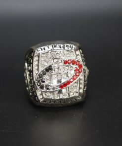 Our championship rings are meticulously created by our artisans. We use a copper base, which takes longer and requires more effort, but produces crisper details and a brighter final plating. 18k White Gold, Yellow Gold, or a combination of both is used depending on the ring. The diamonds are AAA-grade cubic zirconia that has been hand placed.
