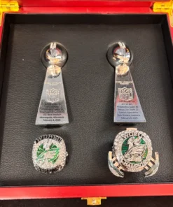Our Lombardi Super Bowl replica trophies are crafted from a solid zinc alloy base and adorned with gleaming silver plating!
